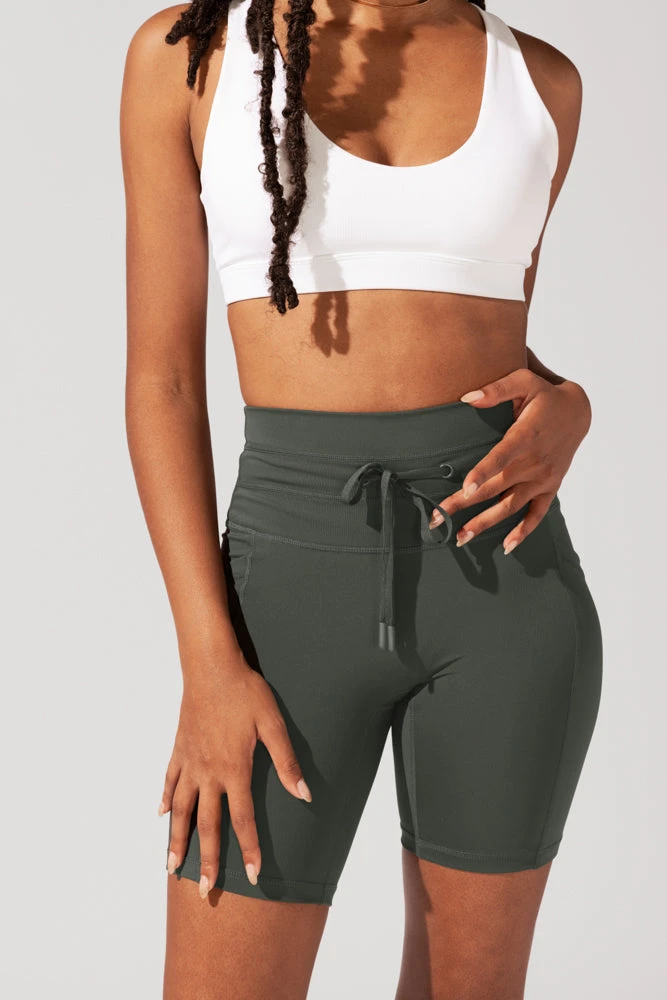 Our most-loved, adjustable drawstring waistband in an all-new silhouette. Meet the Cargo Biker Short. These form-fitting shorts feature a high-waisted cut, a seam-free anti-cameltoe front panel, and a V-shaped booty lifting back seam. Bonus? The fabric is so smooth it’s pet hair resistant too!