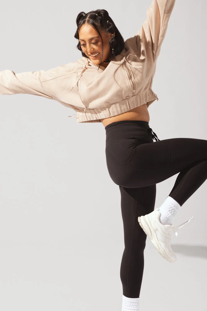 The cozy, oversized half-zip hoodie that’s perfect for pre-workout warmups and post-workout cooldowns. Also, you can totally turn this into a super cropped sweater using the 2 adjustable side bungee cords. Our favorite feature? The large, zippered kangaroo pocket to keep your essentials secured, so no more phones falling out of loose pockets!