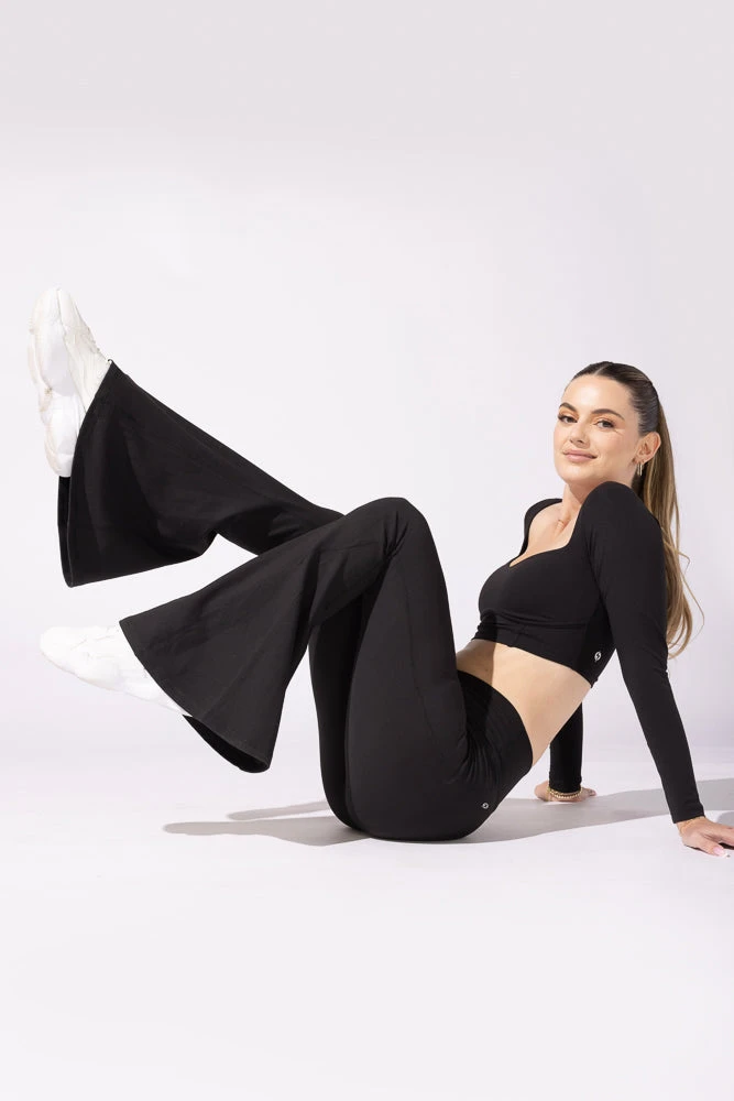 Our Y2K-inspired flared legging just got even more dramatic. With their just-below-the-knee flare, these leg-lengthening bell bottoms add a retro-inspired touch to any outfit.