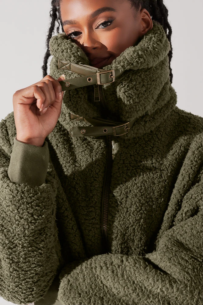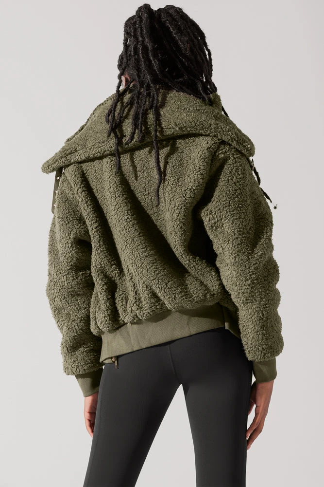 The Kinsley Bomber Jacket In Faux Sherpa – Olive